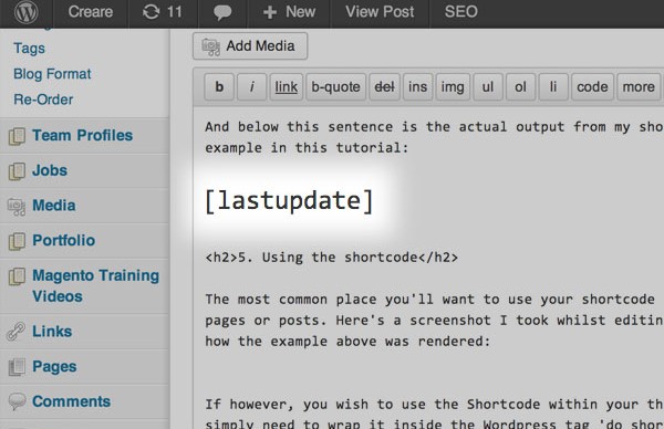 The most common place you’ll want to use your shortcode is within the WYSIWYG edit on pages or posts. Here’s a screenshot I took whilst editing this page, so you can see how the example above was rendered: